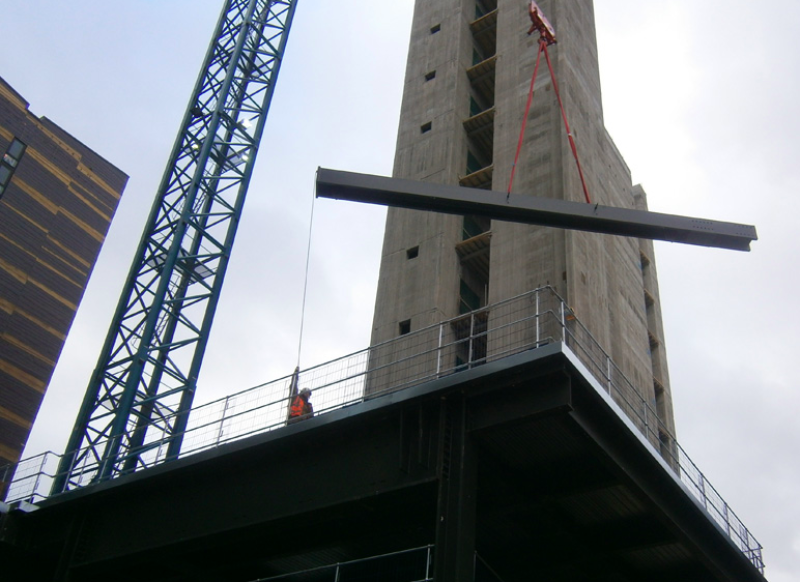 steelwork which were erected using two tower cranes, the total steel weight for the project
